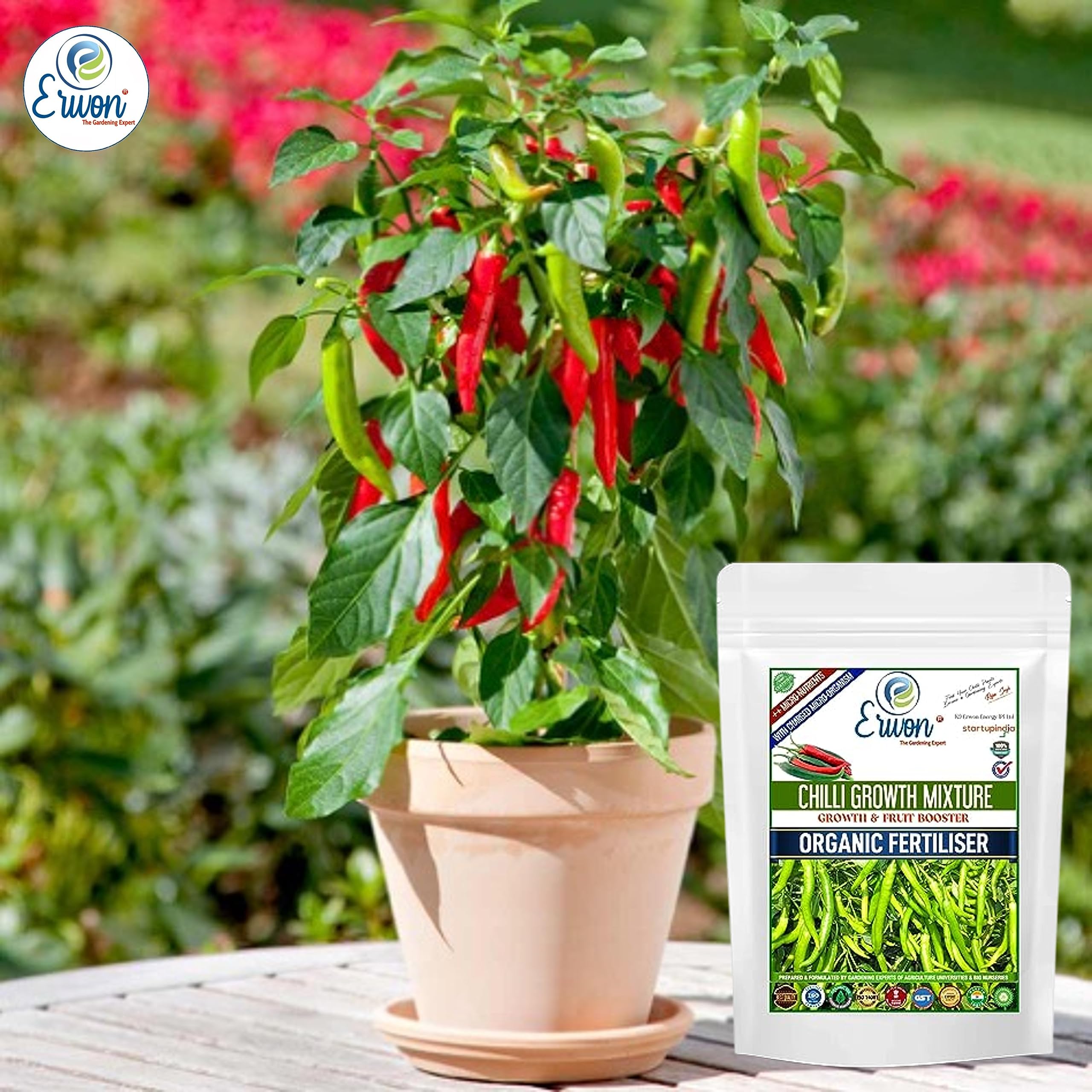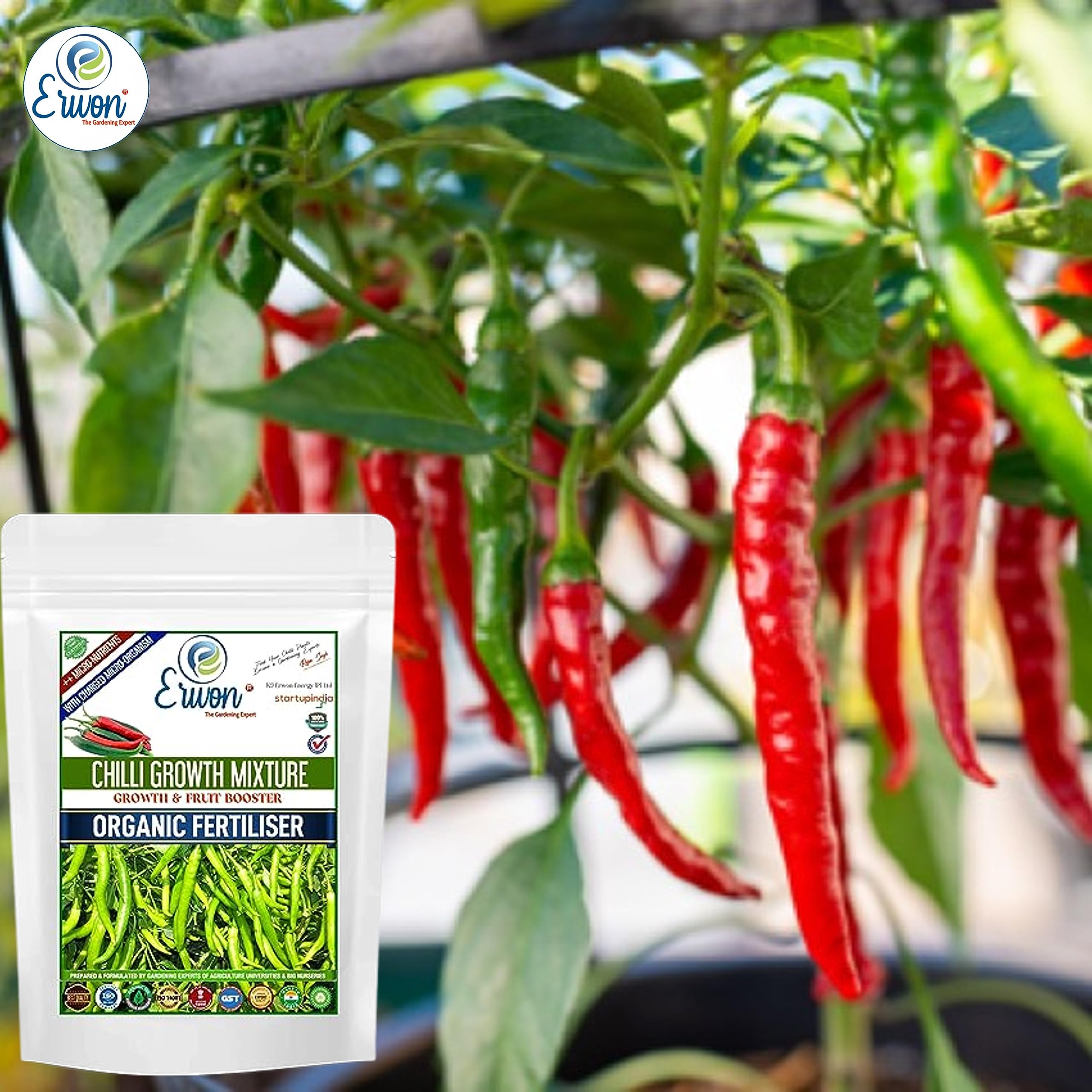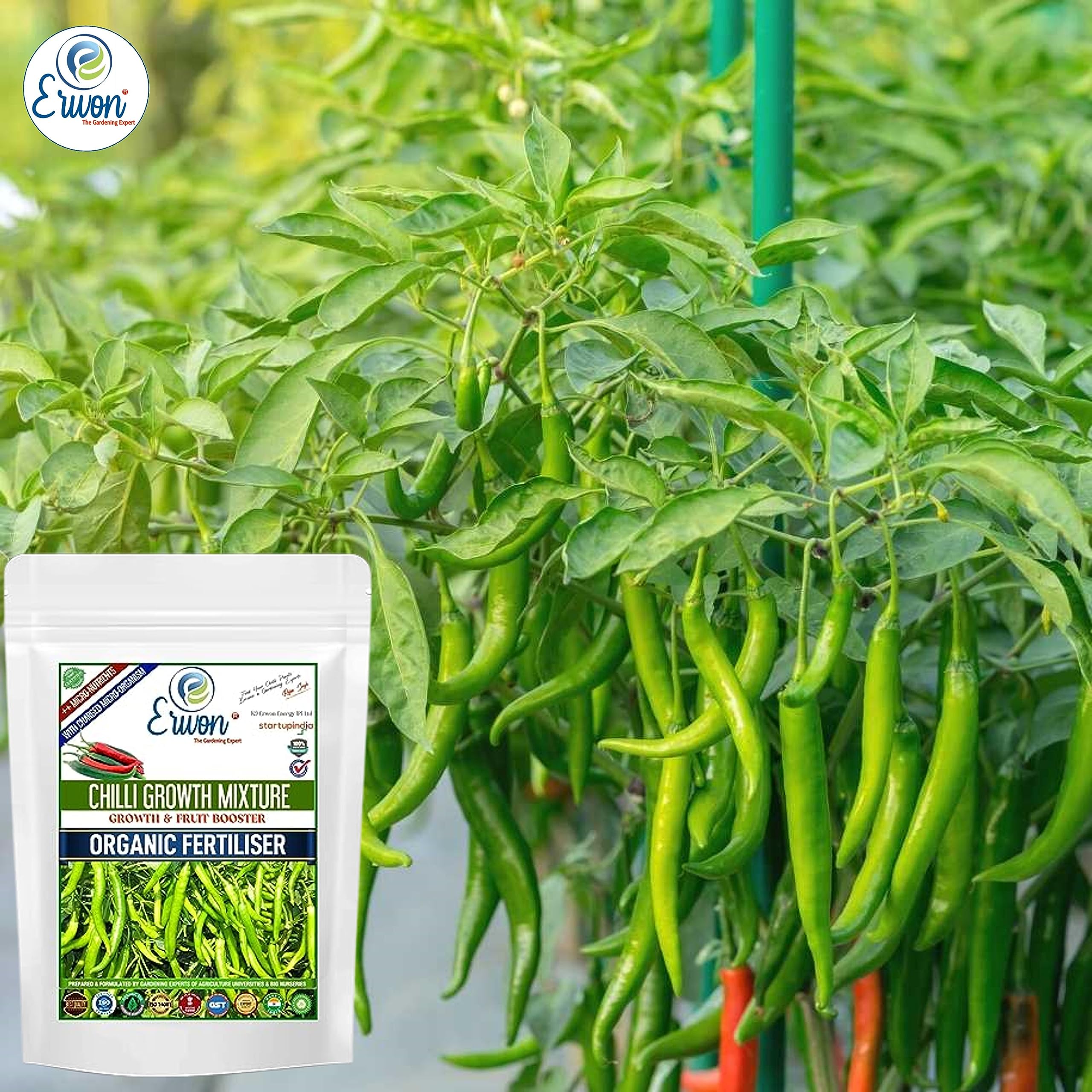 Erwon® Chilli Growth mix, Premium Essential Powerful Organic Fertilizer for Overall Growth of chilli, with Charged Micro-organism and ++ Micronutrients (900 gm)