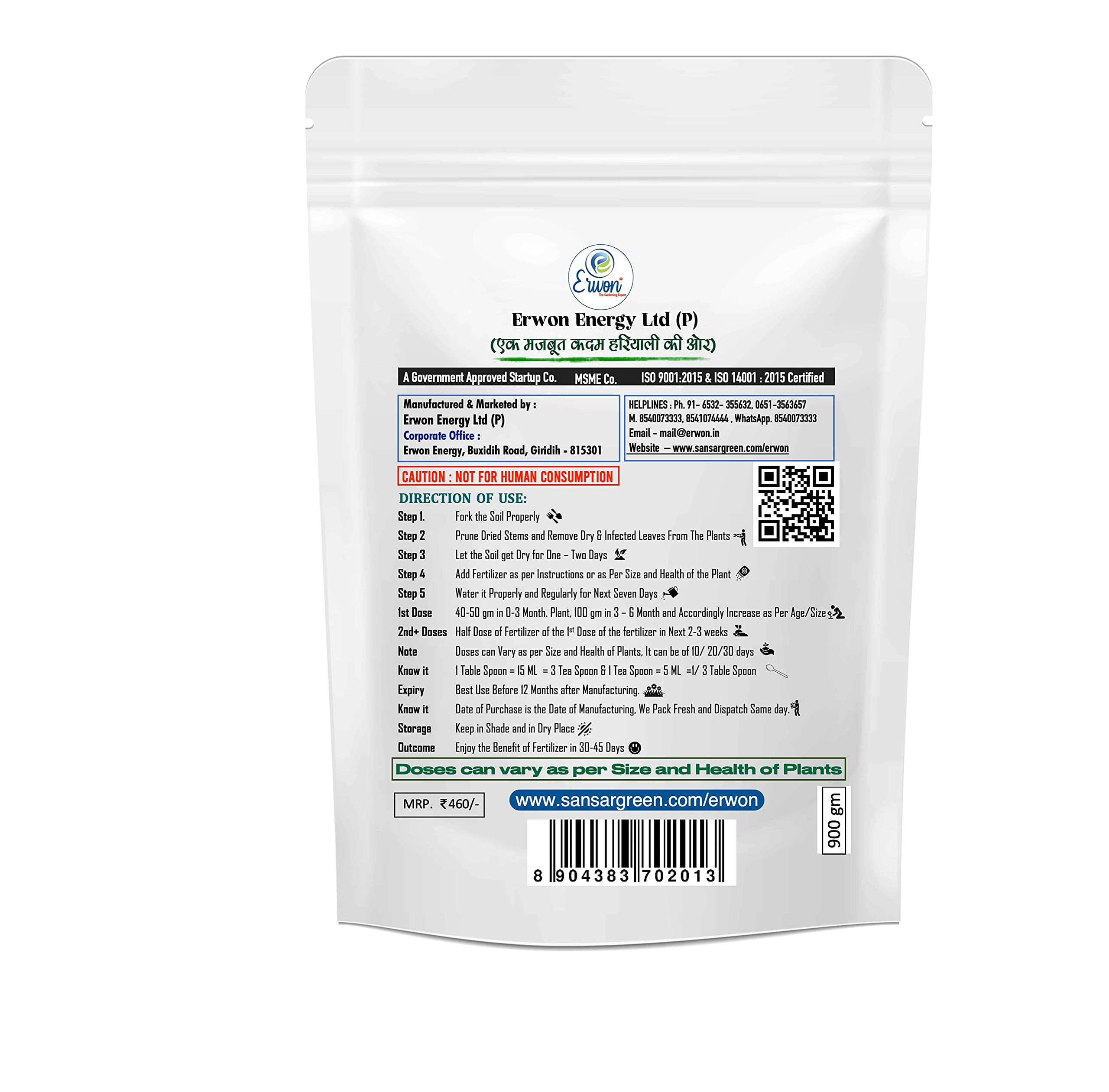 • Enhances the natural colour of plants and helps in maximising growth. Prepared By India’s Leading Planting Products manufacturing Company ‘Erwon Enegy’.