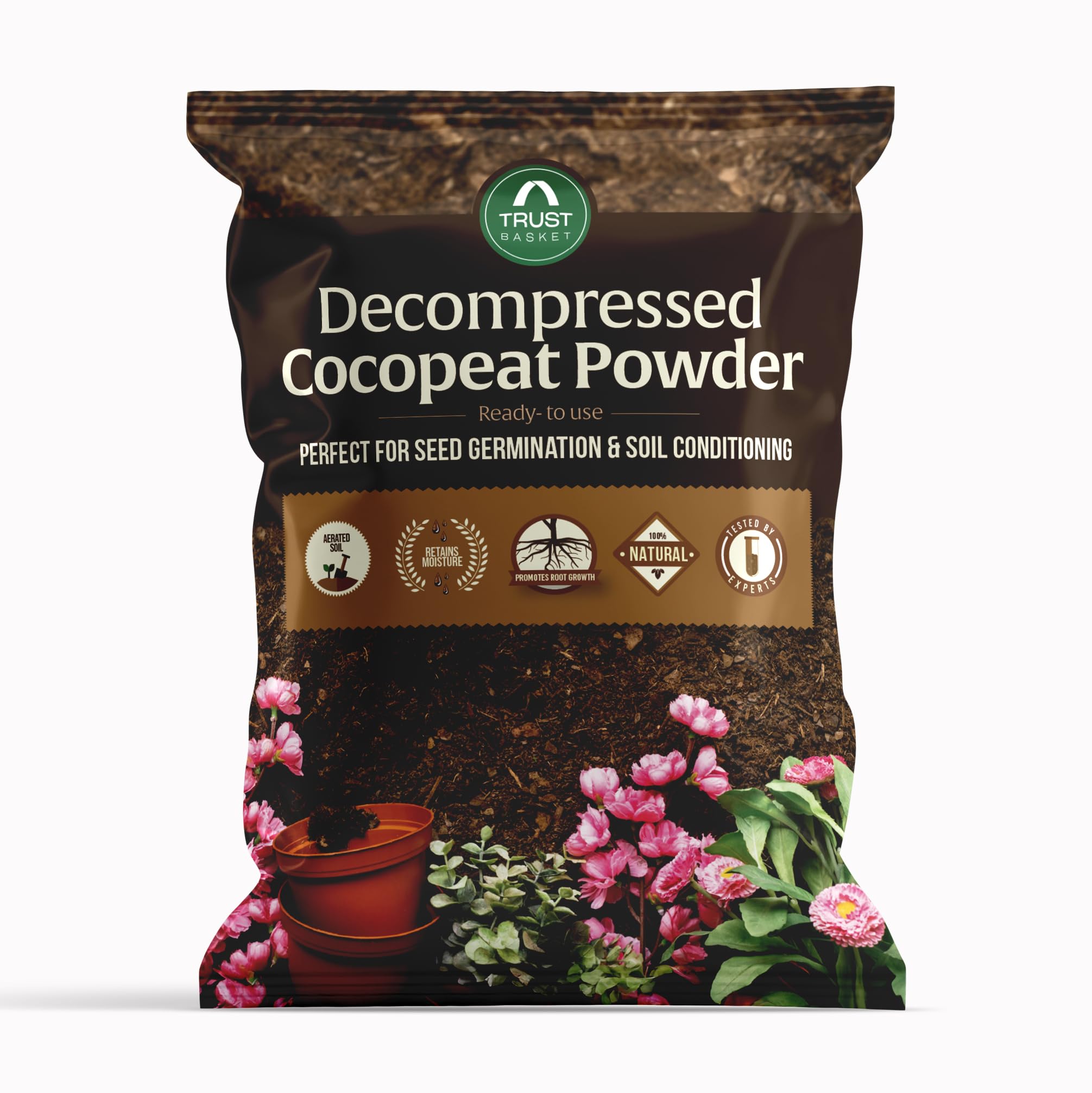 - Value & Supply: TrustBasket cocopeat comes in convenient cocopeat 1kg sachets or in large 5kg cocopeat bulk packs to fit every gardening project. Each 5kg cocopeat pack yields a large volume of planting medium (up to 75 liters), making it ideal for extensive vegetable beds or large potting areas.