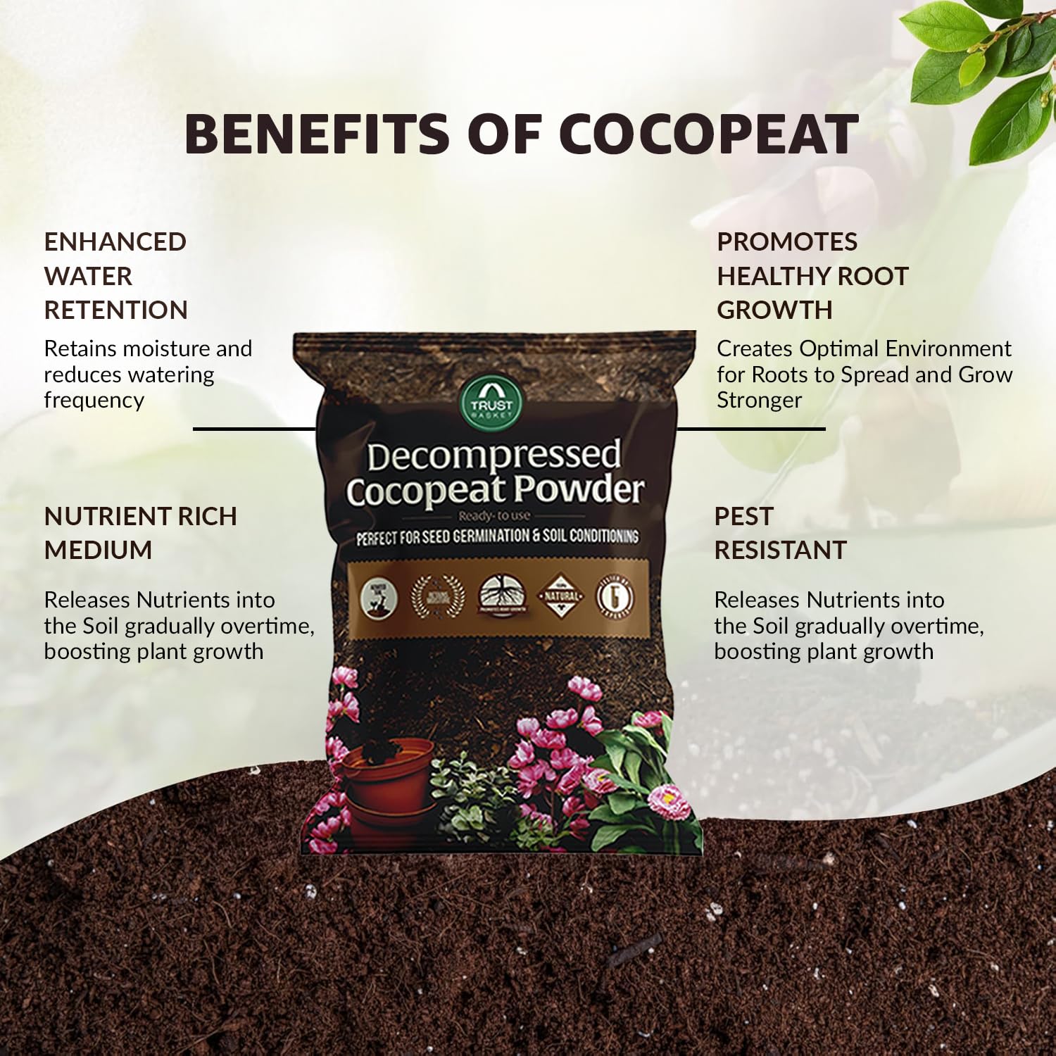 - Sustainable & Eco-Friendly: Harvested from natural coconut husks, this product is completely free from chemicals and synthetic additives. TrustBasket cocopeat is biodegradable and renewable, making it an environmentally responsible choice for soil conditioning. By recycling coconut coir waste into a high-value planting medium, you support sustainable farming and reduce reliance on nonrenewable peat moss. This eco-conscious growing medium is great for organic gardening, aligning with green practices and reducing carbon footprint.
